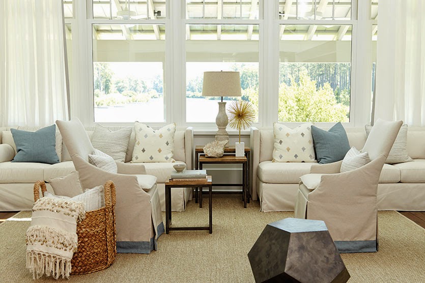 Todos os anos a revista Southern Living reúne uma talentosa equipe de designers cuja missão é construir uma casa a partir do zero, que exemplifique o estilo de vida dos sulistas americanos. Este ano, o projeto ficou sob a responsabilidade da decoradora Suzanne Kasler e do arquiteto Ken Pursley. A casa de férias, outra daquelas em que se poderia viver por toda a vida, cercada por pinheiros e situada ao lado de um lago, está completa, com uma varanda nos fundos com vistas magníficas do nascer do sol.