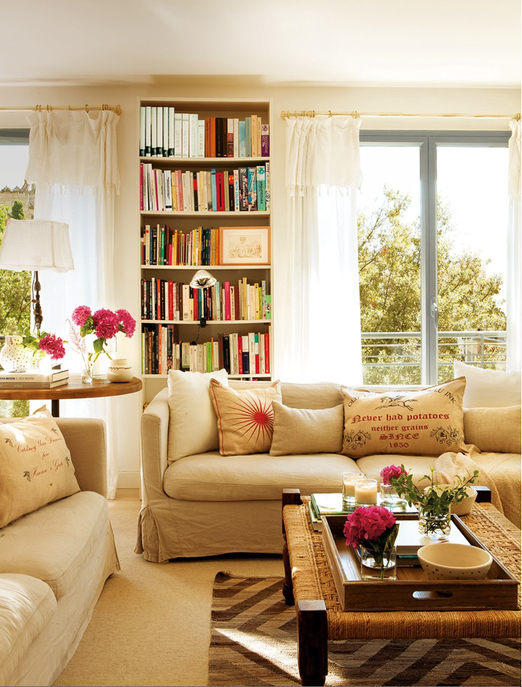 A decoração é aconchegante, uma mistura fina de estilos e períodos, objetos que foram meticulosalmente escolhidos para a sua loja e que acabaram no seu apartamento.