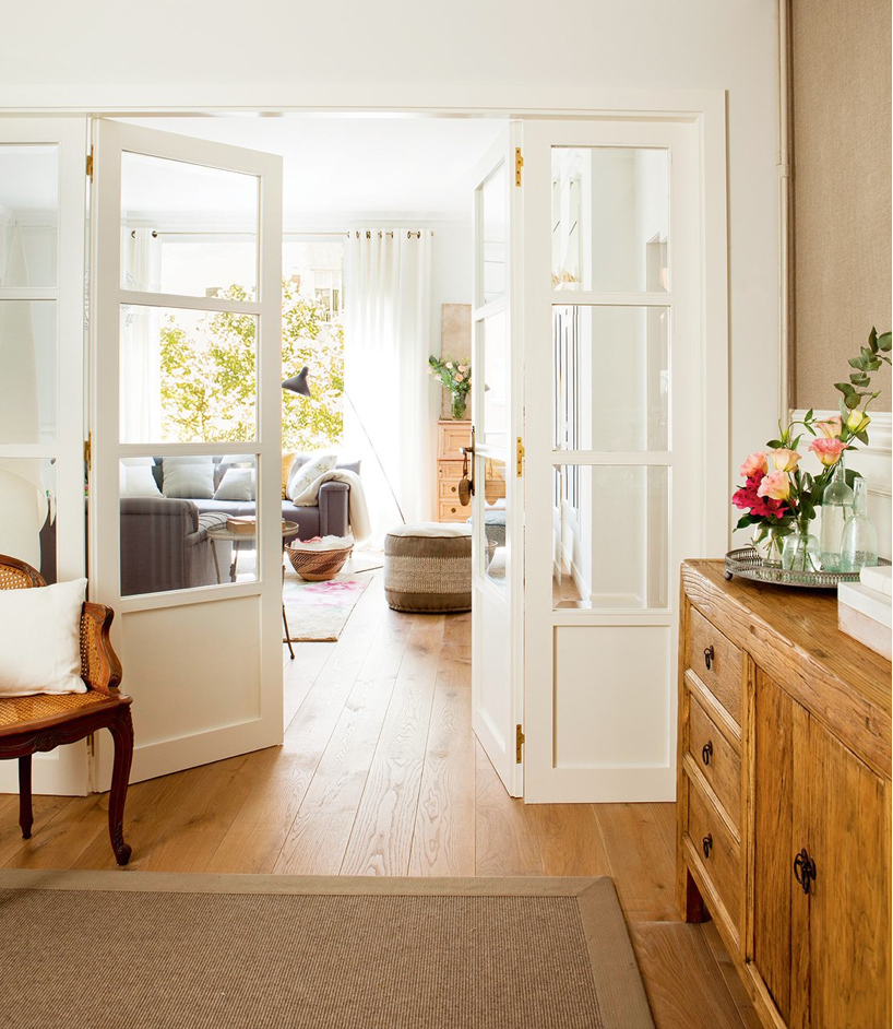 Este apartamento foi reformado pelo escritório Meritxell Ribé, que providenciou a entrada de luz natural eliminando paredes e corredores e instalando portas de vidro, além de trocar o piso original em cerâmica escura por este de carvalho e instalar um sistema de automação residencial atendendo às exigências dos proprietários.