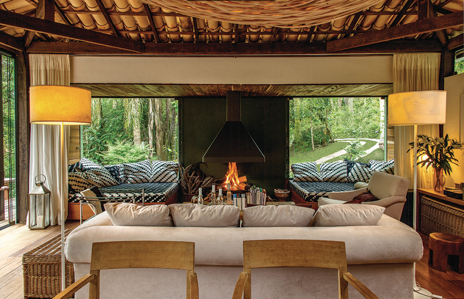 Com dois quartos e sala integrada à cozinha, portas de vidro com abertura total deixam à vista a mata deslumbrante.