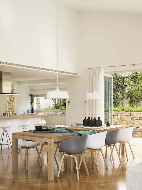 Esta casa foi projetada pelo arquiteto Jaume Alomar, e está localizada em Cala Vinyes, em Mallorca. As vistas panorâmicas da foram integradas à decoração leve, vanguardista e mediterrânea.