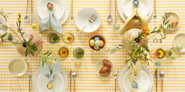 Também seguindo a linha natural, estas mesas para o almoço de Páscoa estão um charme - de autoria da inglesa Neptune, com o bom gosto de sempre.