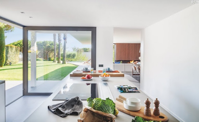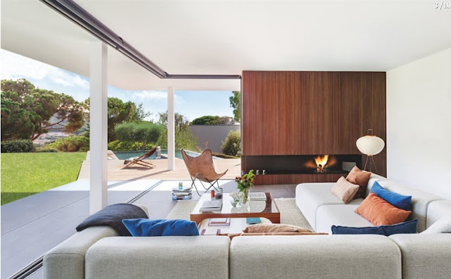 Inspirados nas regiões costeiras ao longo do Mediterrâneo e da Riviera Mexicana, os terraços da casa descem da encosta até a praia abaixo. O clima temperado, luz solar abundante e vistas de tirar o fôlego justificam os vários terraços em camadas. Os espaços abertos são combinados para criar uma casa costeira casual.
