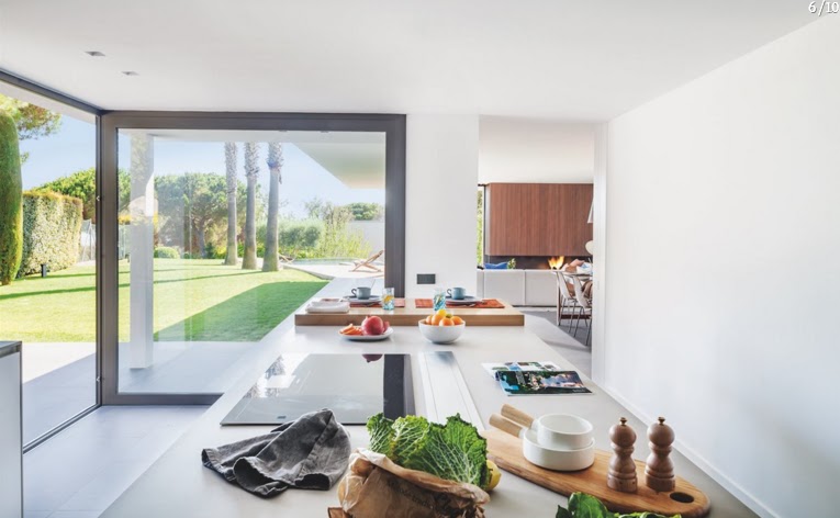 Já a área interna foi remodelada para atender às necessidades da vida moderna, mas o clima mediterrâneo está ali, em cada detalhe, nos tons neutros, nos materiais naturais.