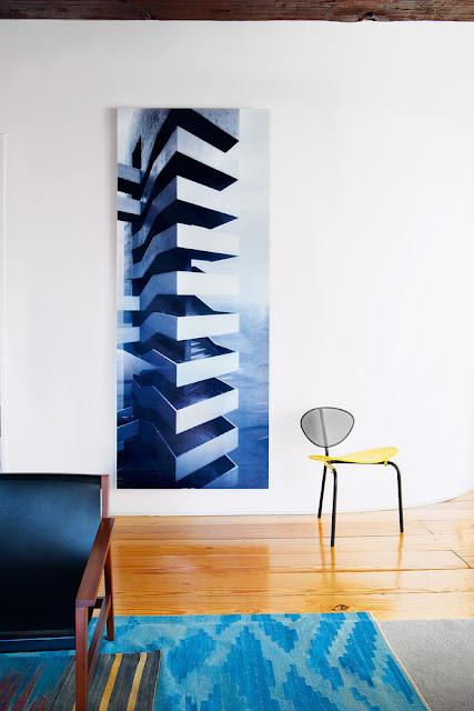 Cabeças de leão indonésias e fotografias de José Manuel Ballester fazem parte do acervo que decora o apartamento de um diplomata português, no centro de Madrid.