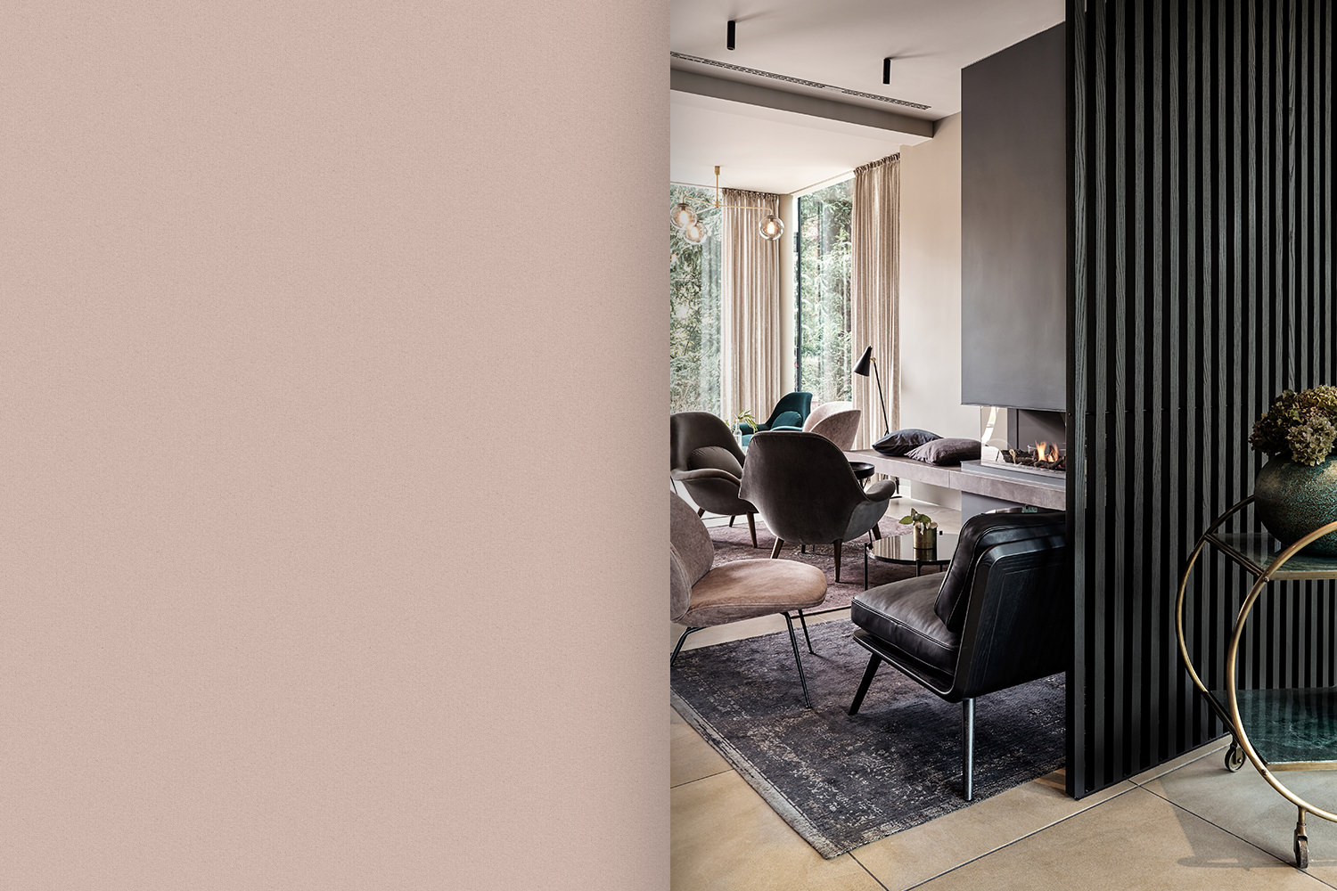 Nesta casa, uma mistura fina de design atemporal, funcionalidade e conforto, complementa o projeto que usa materiais naturais numa estética elegante.