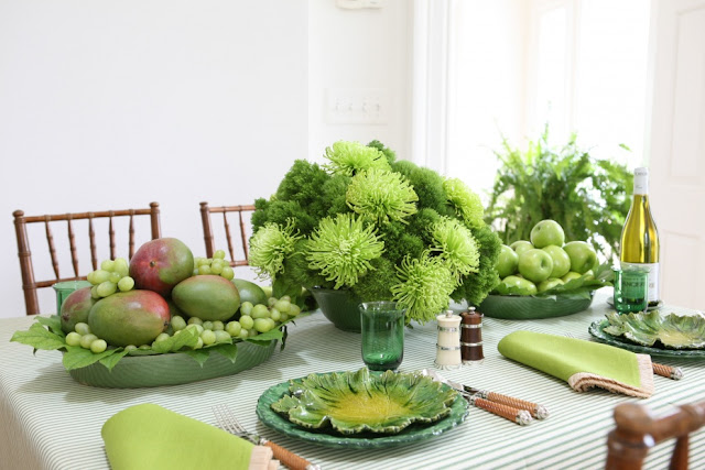 A famosa hostess e formadora de opinião fotografou algumas de suas mesas, todas na cor verde, mostrando por que seu bom gosto é fonte de inspiração para muitos pelo mundo afora.