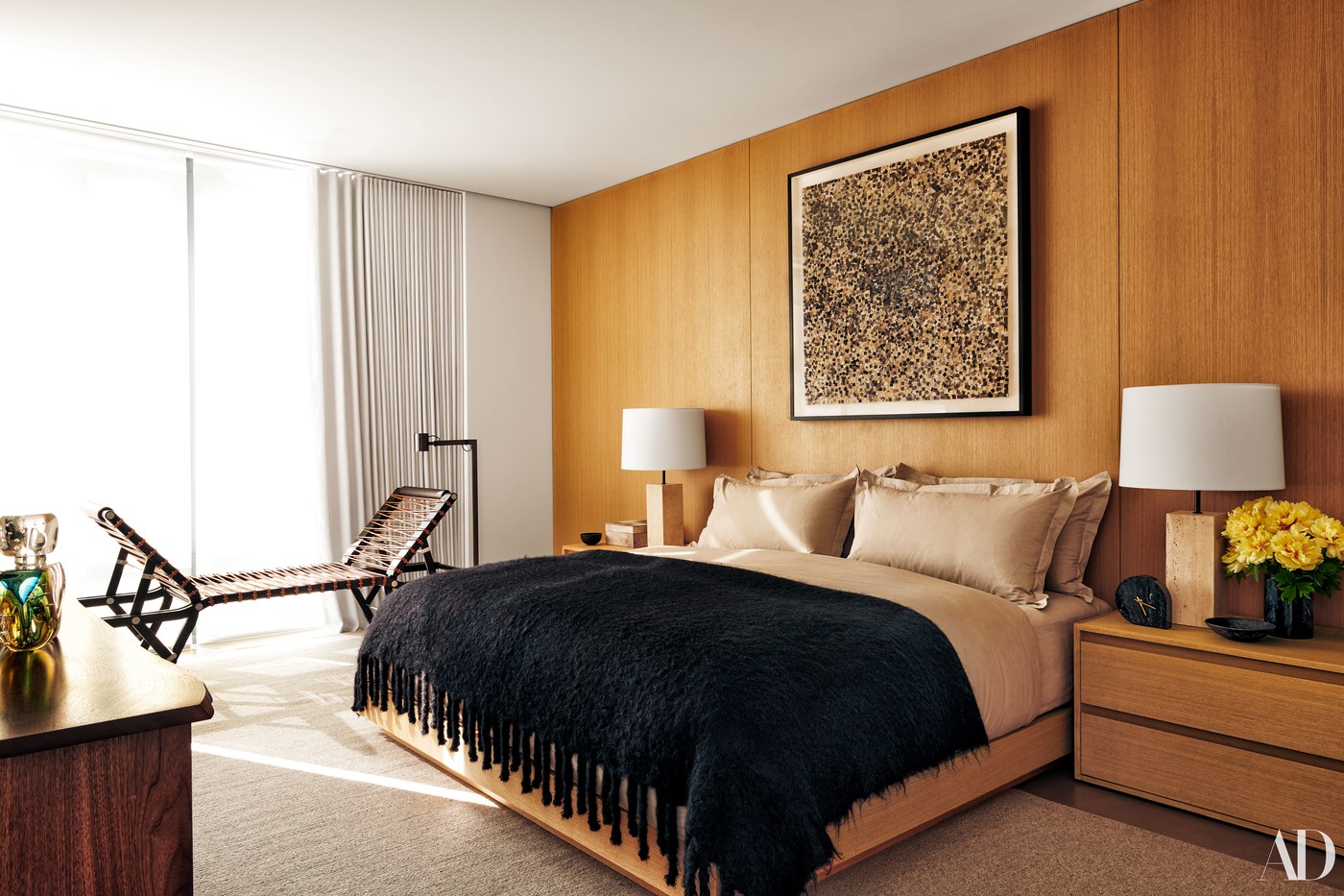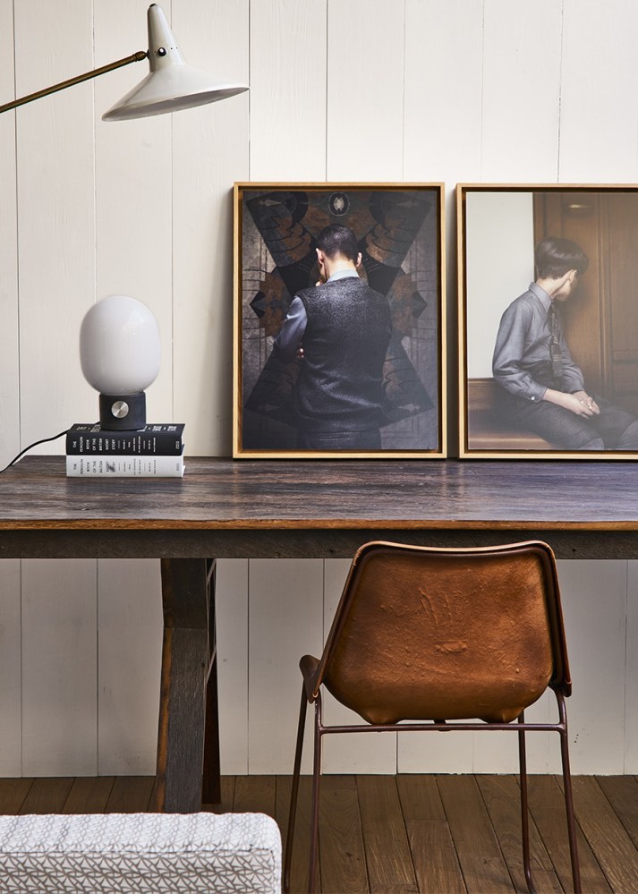 A decoração é contemporânea e urbana, masculina, cheia de peças de design.