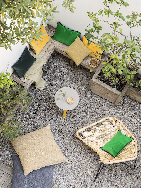 Bastam poucos metros para criar um canto para receber ao ar livre, com o jardim como cenário.