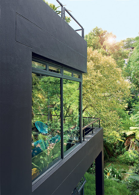 Construída num vale rodeado por montanhas, não muito longe da Cidade do Cabo, na África do Sul, esta casa de paredes negras conta com uma fusão incrível de energias e culturas.