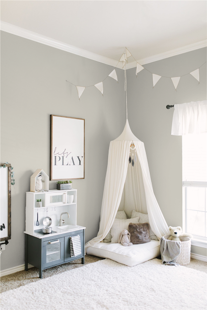 Um quadro ou um rolo de papel para desenhar e treinar seria o complemento ideal para este canto.