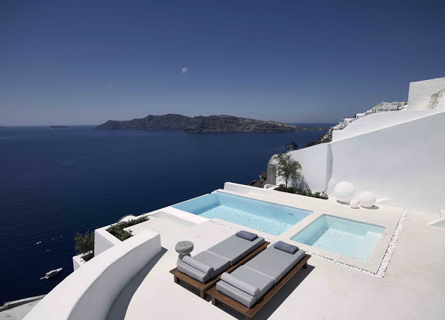 Eis aqui uma linda inspiração minimalista, prática e funcional para quem busca idéias para área externa, mesmo que não tenha o Mediterrâneo como vista.