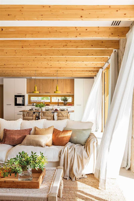 A decoração neutra, em tons naturais, rebate a luz natural e reflete o espírito descontraído com o qual a proprietária tanto sonhou.