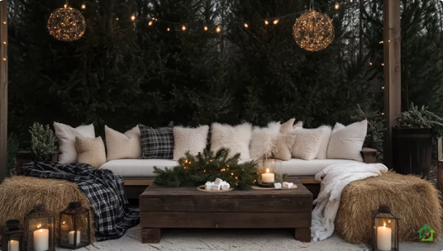 Aqui é possível receber ao ar livre, portanto aproveite ao máximo sua varanda, pérgula ou até mesmo o abrigo de uma árvore utilizando velas, luzes e decorações natalinas, sem receio de criar arranjos com materiais que você pode encontrar na natureza.