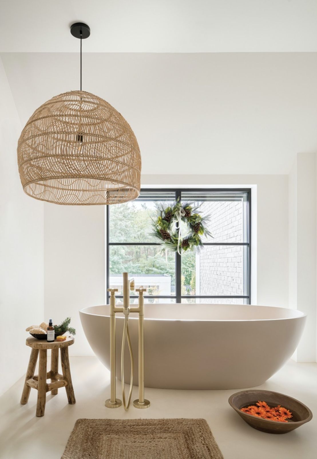 Em vez de uma árvore de Natal decorada, guirlandas com pinhas nas janelas, muitos ramos verdes em vasos e ao redor da lareira. E há também luzes de fada, velas e lareira acesa. O Natal nesta casa pode não ser luxuoso, os proprietários gostam de naturalidade e tons calmos, mas é aconchegante e mágico.