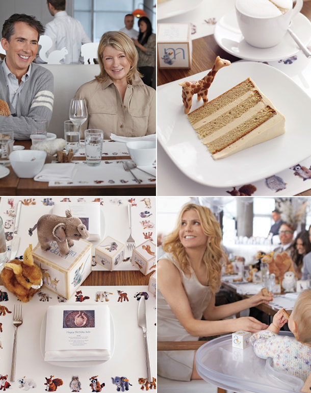 Fiquei encantada com o bom gosto evidente na decoração do almoço em comemoração ao primeiro aniversário de Jude, neta de Martha Stewart, que teve lugar no famoso restaurante Perry St, em Nova York.