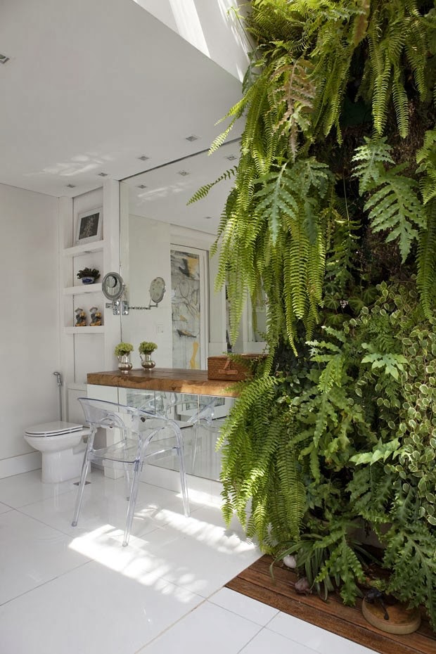 É fantástico este projeto das arquitetas Andrea Teixeira e Fernanda Negrelli, que atendendo aos desejos da proprietária, uma artista plástica apaixonada por jardinagem, integraram o jardim aos espaços internos, literalmente.