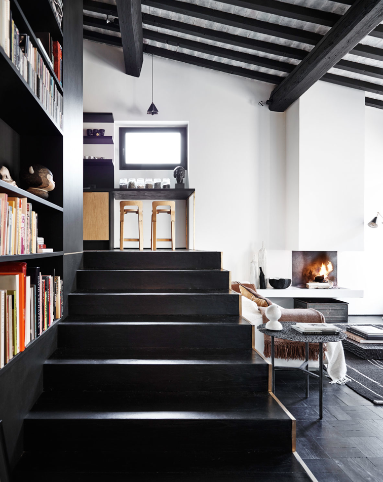 O apartamento de 70 metros quadrados localizado no sótão de uma casa antiga, passou por uma reforma conduzida pelo estúdio de arquitetura Fred & Juul, cujo projeto integrou os ambientes substituindo paredes de alvenaria por paredes de vidro, mas o melhor aqui é o centro histórico da capital da Toscana, visível através de todas as janelas.