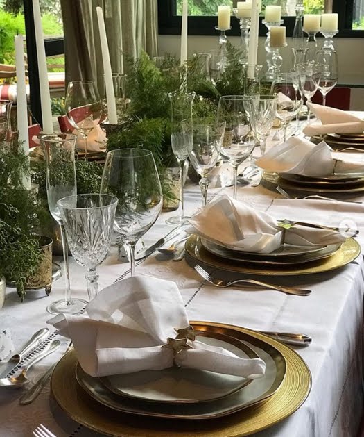 Nos países que passam as festas de fim de ano com temperaturas abaixo de 0 as mesas são um pouco mais formais, mas lindas com o brilho das velas e das decorações em prata e dourado.