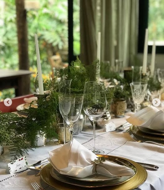 Samambaias e plantinhas compondo com velas e detalhes em dourado tem tudo em comum com esta festa.