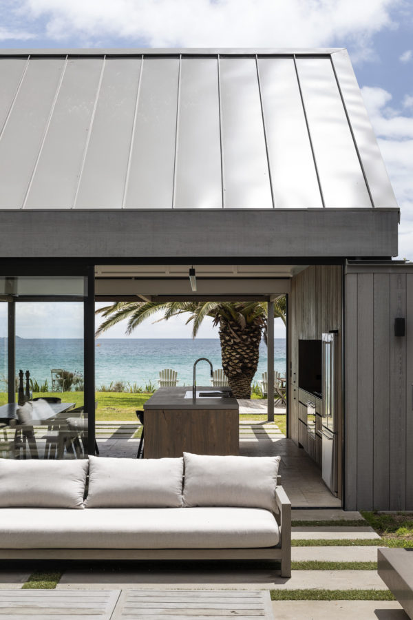 John Irving, do Studio John Irving, projetou esta casa à beira-mar na praia de Oneroa, na Ilha Waiheke, na Nova Zelândia, atendendo ao estilo de vida e à necessidade de privacidade da família de cinco pessoas - um casal e três filhos jovens.