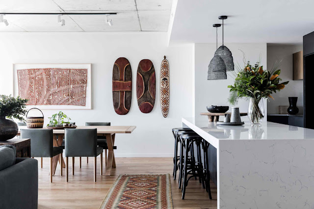 A equipe do estúdio Louise Walsh Interior Design projetou este apartamento localizado em Brisbane, na Austrália. O objetivo principal era criar ambientes descontraídos com um espírito boêmio, que refletissem a vida, as viagens e os gostos dos proprietários.