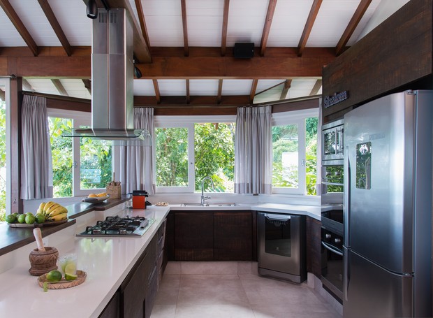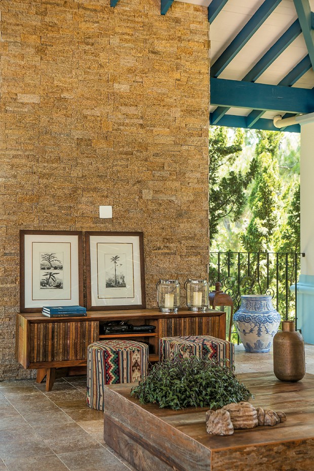 A arquiteta Andrea Murao foi contratada para construir do zero um grande living, sem paredes laterais, com vista para a mata e para a piscina. A casa de fazenda localizada na estrada de Ubatuba tinha muita personalidade, com móveis rústicos e janelas pintadas de azul. A arquiteta teve que se manter fiel ao que já existia.