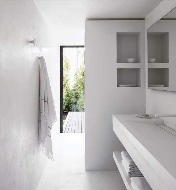 A casa fica em East Hampton, é linda, cercada de verde e sua decoração é minimalista, monocromática, e está na mais perfeita harmonia com o entorno que fica à vista de todos os cômodos.