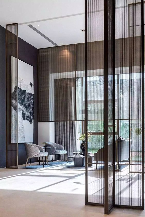Num apartamento com decoração industrial qual o material adequado para uma divisória quarto sala?