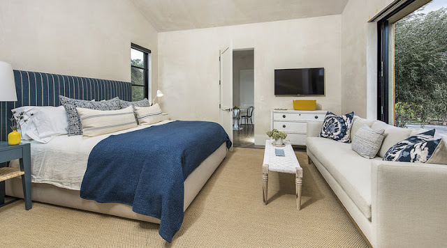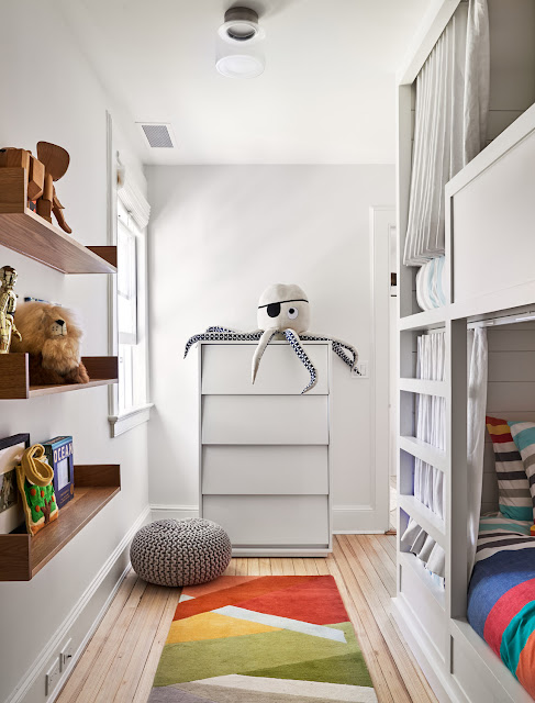 Os detalhes que definem a decoração incluem as camas "flutuantes" na sala de estar em estilo de cabine; azulejos artesanais na cozinha; e paredes de gesso com espátula manual.