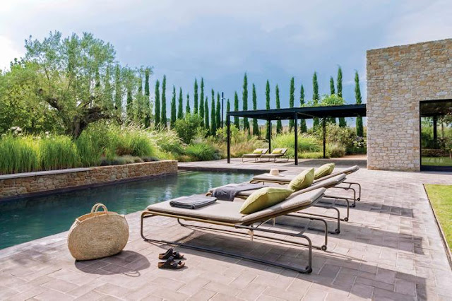 Situada nas colinas de Santa Lucia, esta casa de fazenda foi projetada para que as vistas da serra fossem visíveis de todos os cômodos; as áreas comuns fluem naturalmente para os espaços ao ar livre. A matéria prima é basicamente pedra local, madeira do celeiro agora reciclada, zinco e telhados verdes.