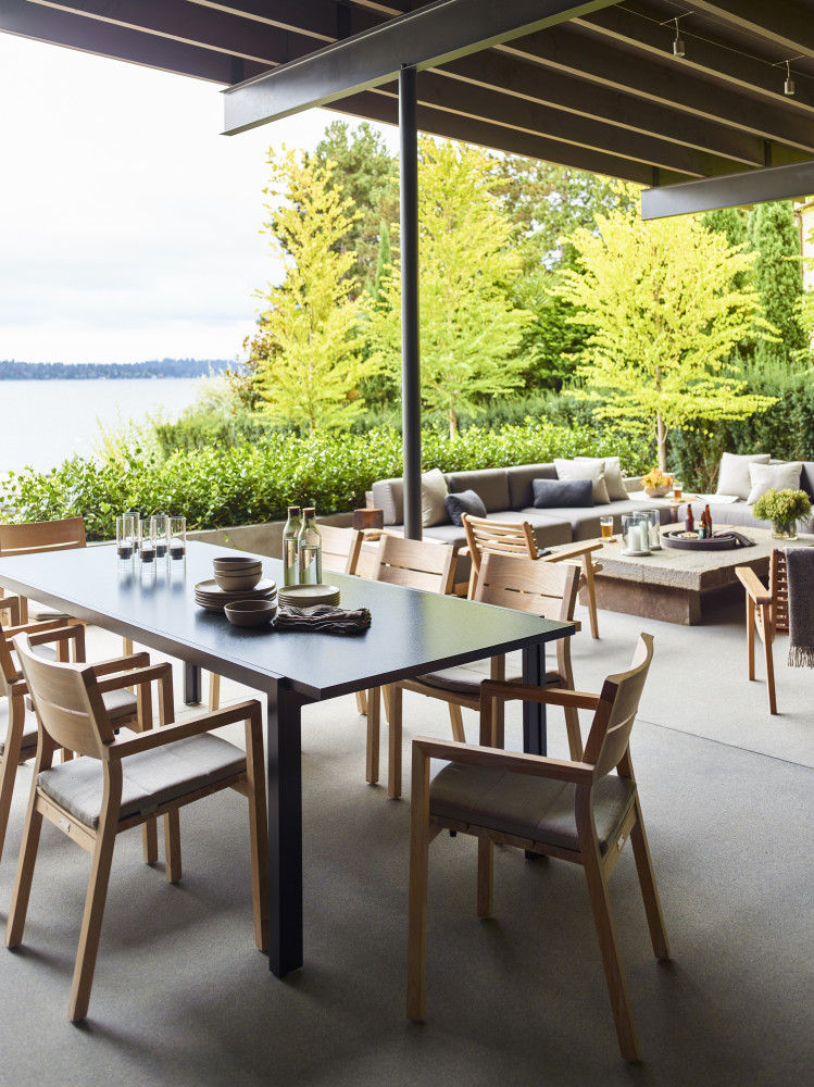 Os ambientes receberam móveis fabricados com madeira de demolição, pedra e peças de antiquários, que complementam as qualidades naturais da casa, trazendo uma sensação de acolhimento e conforto. Devido ao layout e transparência da casa, cada peça de mobiliário teve que ser cuidadosamente selecionada por sua beleza e praticidade na manutenção.