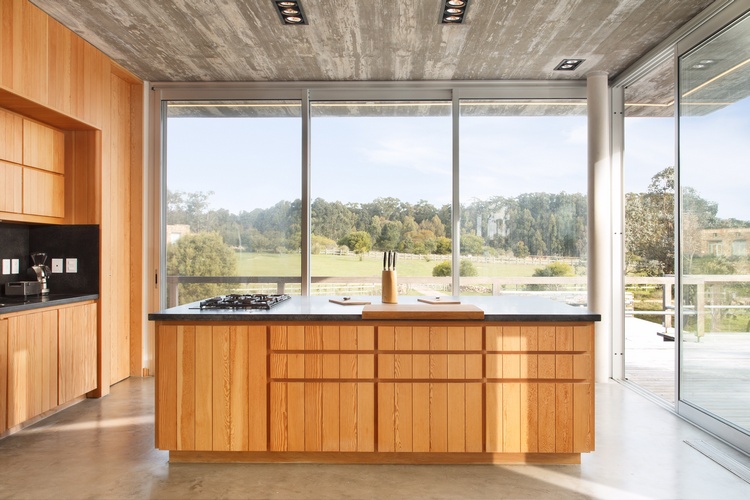 A poucos minutos de José Ignacio, no Polo Medellín de Faro, no Uruguai, a propriedade com vistas para o oceano e para a lagoa José Ignacio está cercada por flora e fauna nativas. Seus acabamentos são de alta qualidade, as linhas são retas e os ambientes são espaçosos e iluminados por luz natural, combinando cimento e madeira, numa decoração prática e funcional.
