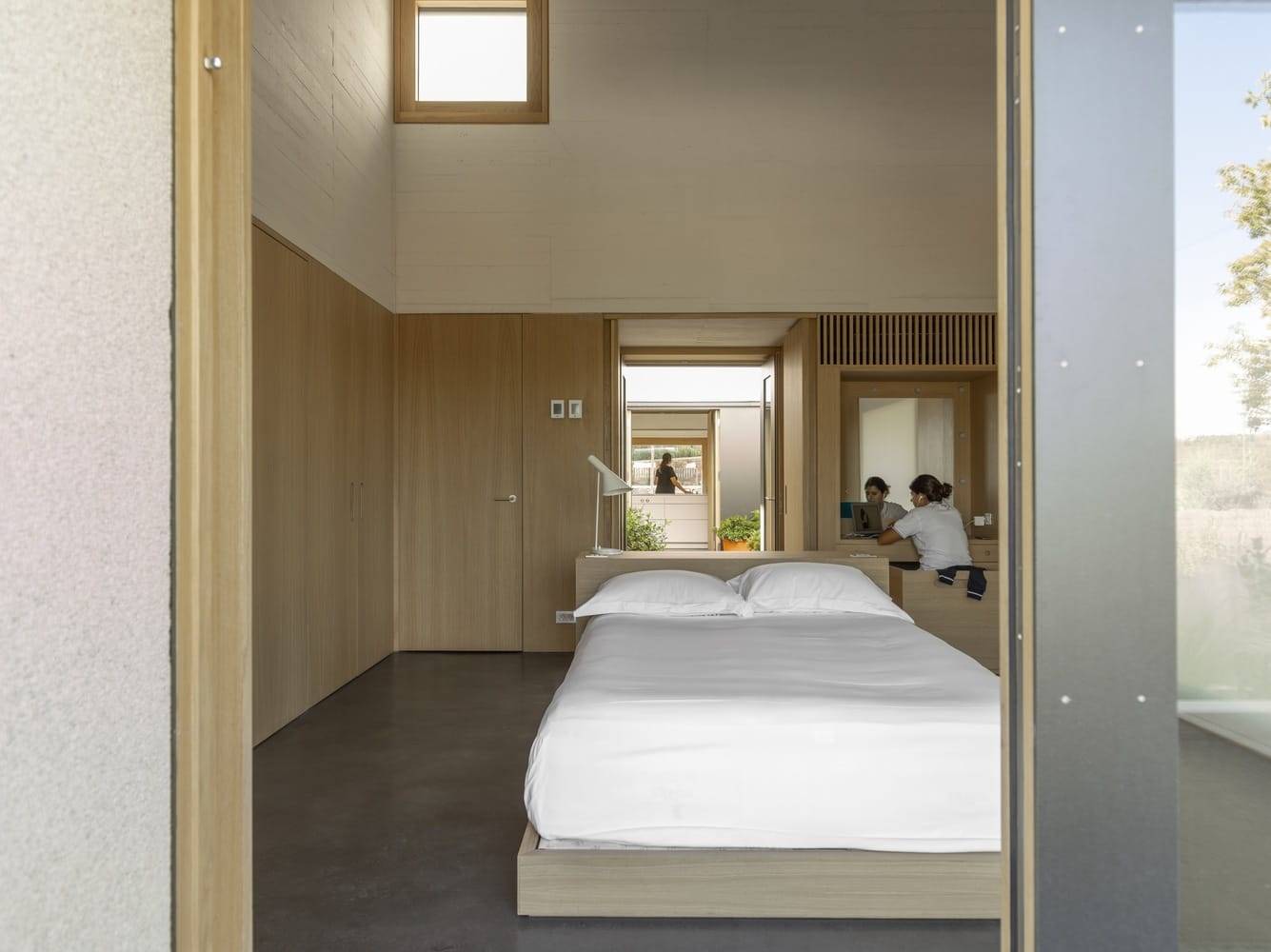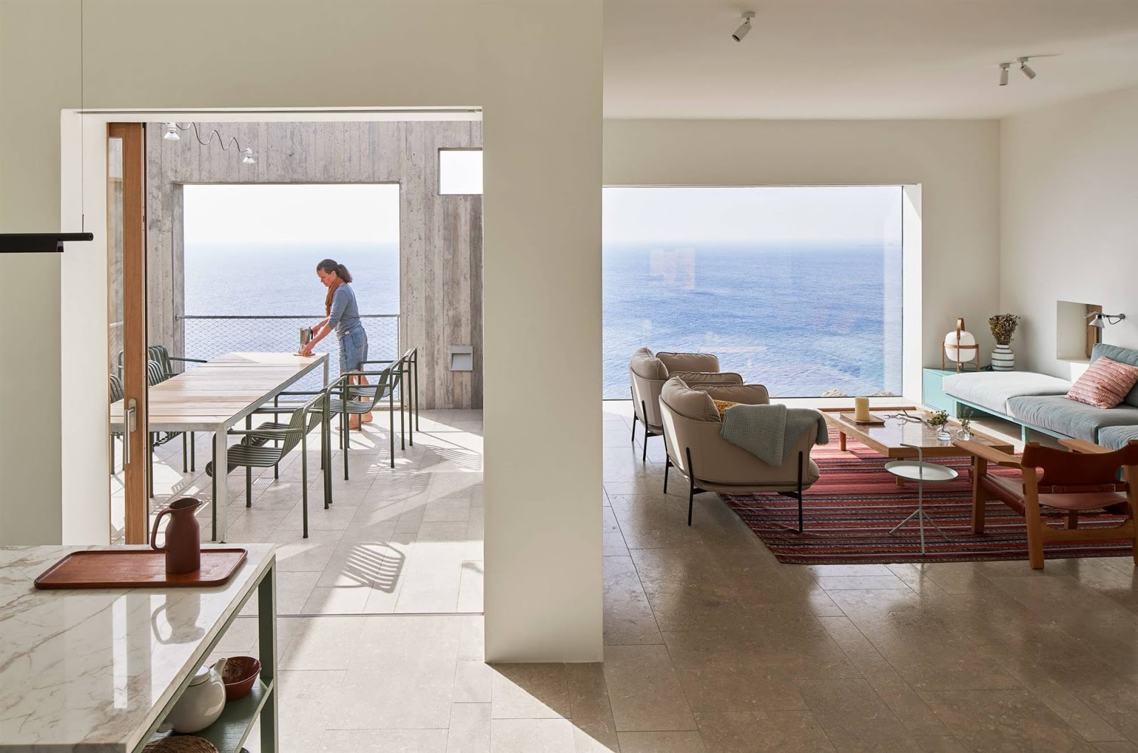 Como a maioria de suas casas, esta é aberta, clara, arejada e funcional.
