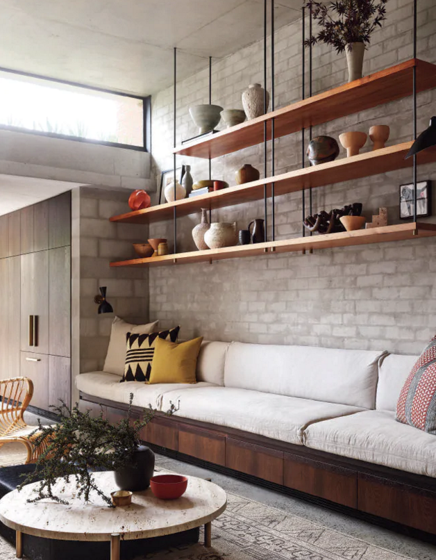 O piso de tijolos, simples e baratos, dá um toque quente e rústico, além de ser fácil de manter.