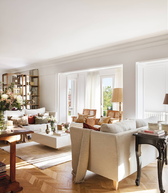 Os donos deste apartamento em Zaragoza queriam aumentá-lo e tiveram a oportunidade de comprar o andar ao lado, contratando para esta integração a arquiteta Sylvia Preslar. Ela teve que repensar todo o conjunto, inclusive as entradas: agora são duas, uma segunda na cozinha e outra, mais charmosa, na sala principal.