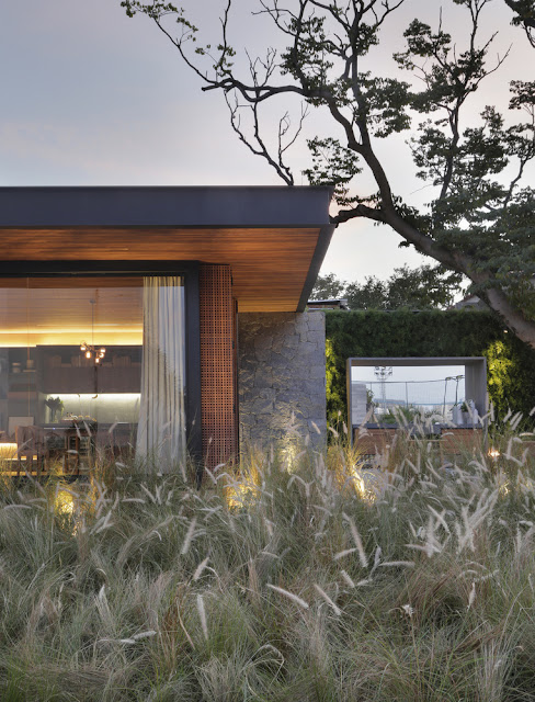 Projetada pelo estúdio Play Associates, esta casa conta com vários espaços na área externa onde os proprietários podem se esconder do calor.