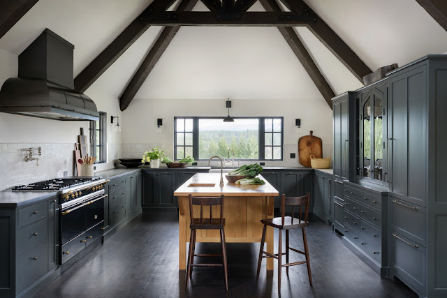 Já a decoração confortável e eclética projetada pela designer de interiores Jessica Helgerson, conta com peças vintage e contemporâneas.