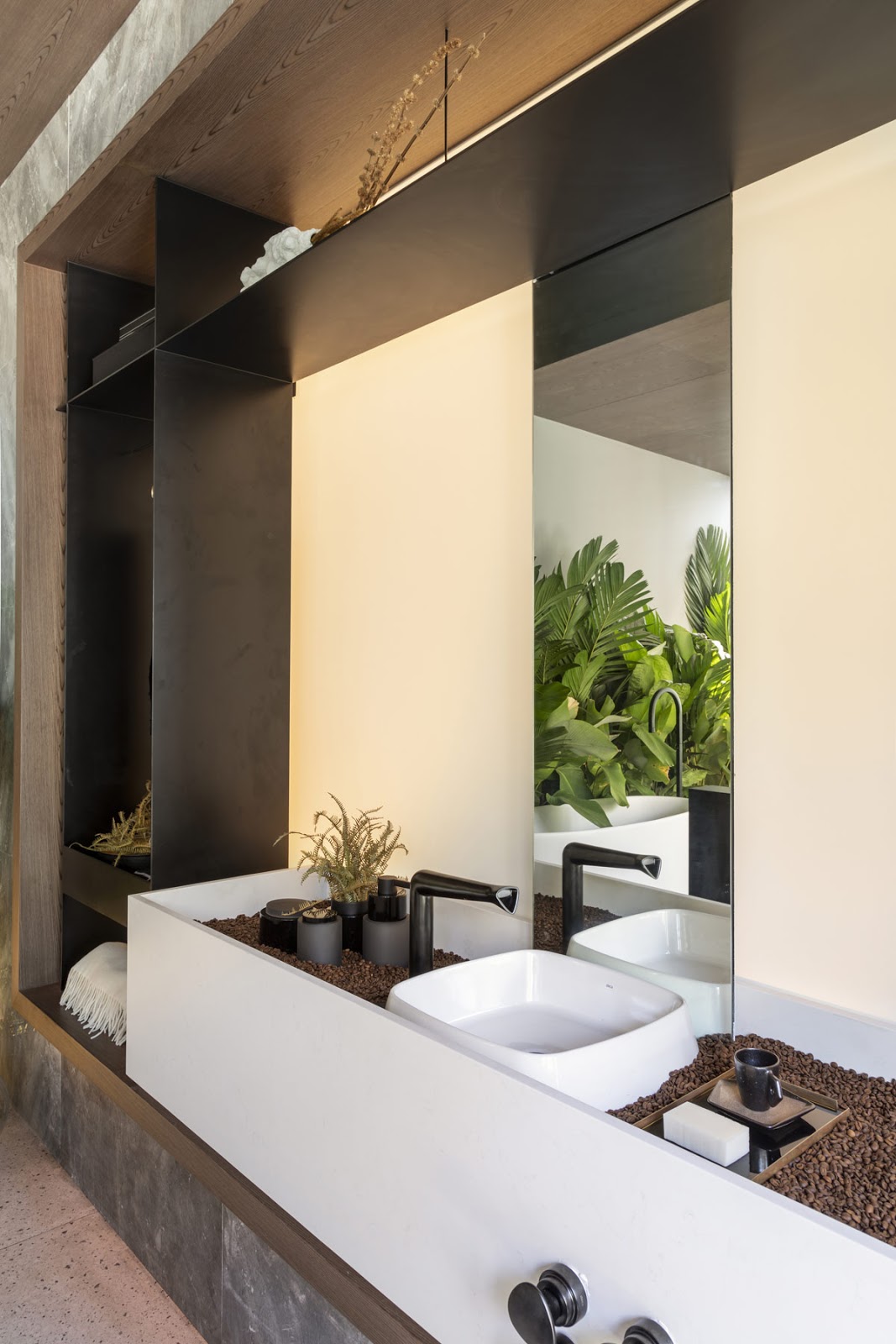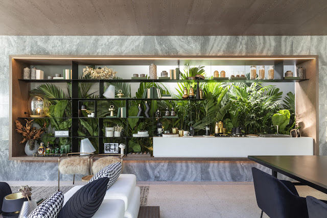 A vegetação interna se mistura à externa reforçando a nova consciência ambiental que vem crescendo, assim como a necessidade cada vez maior de vivermos próximos da natureza.