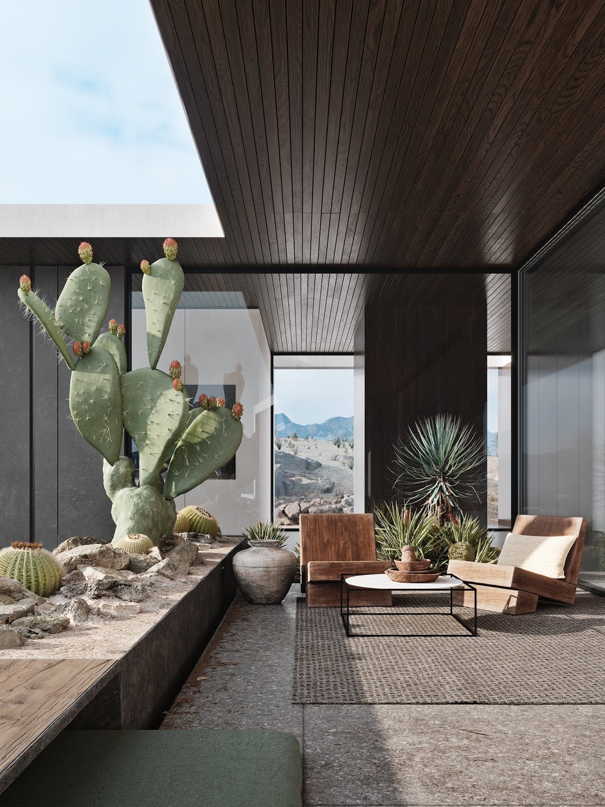 É incrível o contraste da arquitetura e dos ambientes contemporâneos desta casa com o deserto em que se encontra. Projetada pelo Studio AR&D Architects os tons e os materiais usados simulam a paisagem à sua volta.