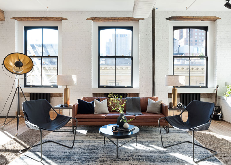 Com hall, cozinha, sala de jantar e estúdio integrados além de duas suítes, este loft no SoHo usou materiais de demolição como tijolo, madeira e aço, que dão o clima que os nova-iorquinos buscam.