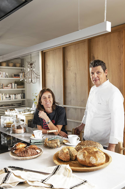 Hoje o terraço, a sala de estar, a sala de jantar e a cozinha são como um espaço único, multifuncional projetado pela designer de interiores Natalia Gómez Angelats para este padeiro e sua família.