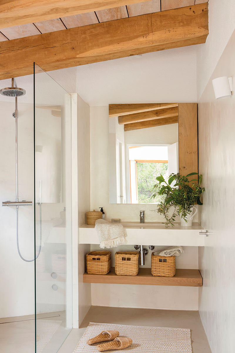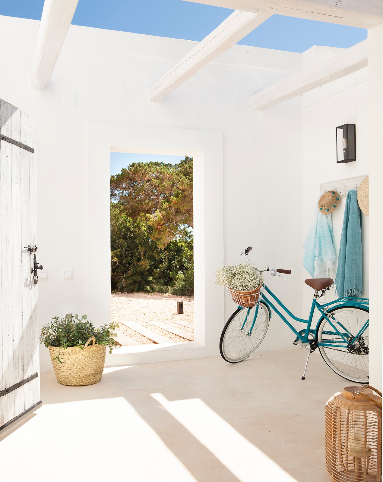 Tudo nesta casa convida a relaxar, do branco que ilumina todos os espaços, à vista espetacular, aos móveis confortáveis em fibra natural e os toques de turquesa na decoração de Gemma Gallego, da Knowhaus.