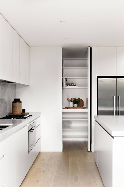 A Casa Caulfield, em Melbourne, na Austrália, é a casa que o arquiteto Pipkorn Kilpatrick projetou para viver com sua família. Superfícies brancas, madeira e vidro são a base desta casa minimalista, prática e funcional.