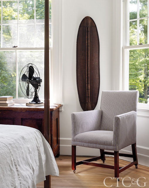 DePerno e seu parceiro de negócios e vida, Andrew Fry, restauraram completamente a casa de três quartos, situada a cinco minutos de carro de sua loja de acessórios e decoração, Plain Goods, em New Preston. Como o casal compartilha uma estética comum - espaços limpos, simples, puros e sem excessos - resolveram pintar de branco os detalhes que pesavam visualmente.
