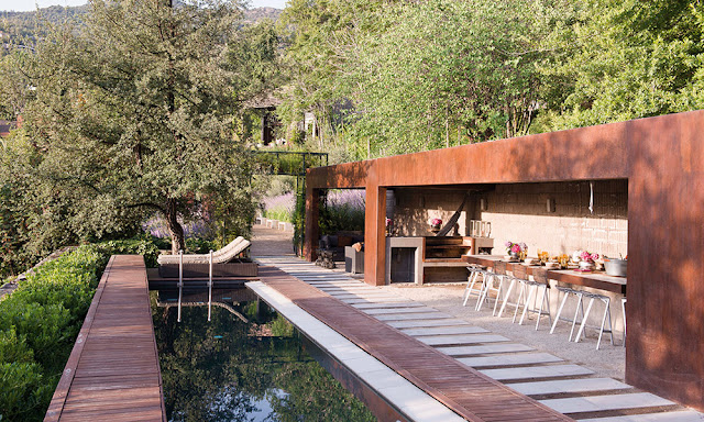 A casa é muito mais que um simples jardim, é o local perfeito para fazer desde um casamento a um churrasco em família. Situado no meio das colinas de Lo Curro, em Santiago, no Chile, com árvores, caminhos, com um silêncio que lembra o campo, piscina e churrasqueira totalmente equipada, este é o último grande projeto da decoradora María Cecilia Rojas e seu marido George Anastassiou.