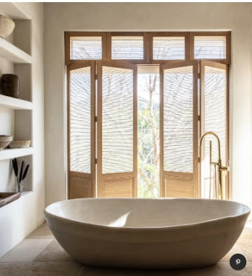 Banheiros com detalhes em madeira ou bambú, sejam eles naturais ou porcelanatos, estão em alta, e trazem ao espaço o clima natural, algo que veio para ficar.