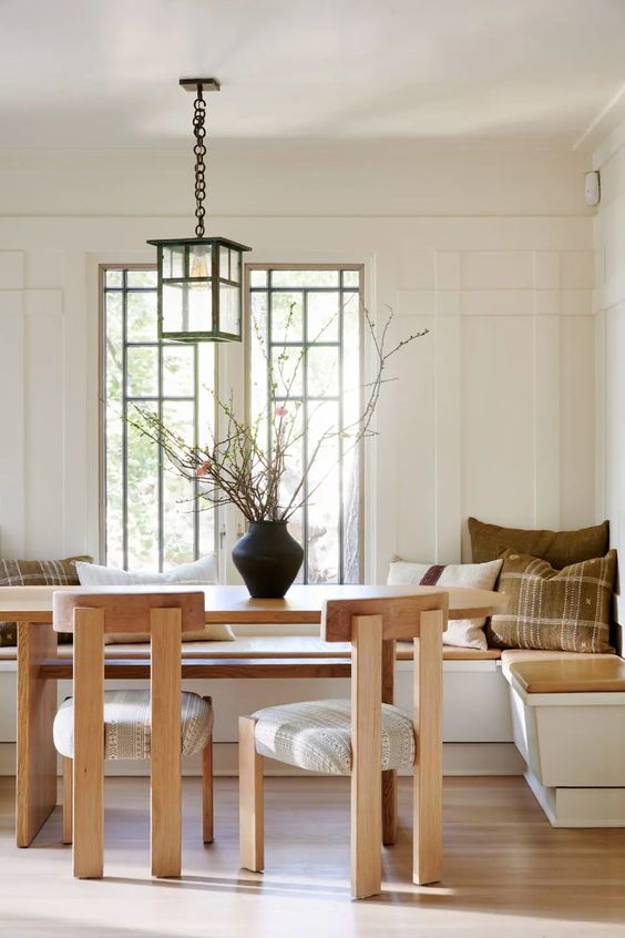 Tem lugar para um banco perto de uma janela, em uma parede ou encostado a uma bancada de cozinha?