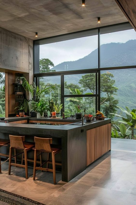 Ao projetar sua casa na serra, observe alguns pontos que devem ser levados em consideração na cozinha, como dar preferência à paleta de cores orgânicas, incluir elementos naturais, integrar espaços internos e externos, optar por grandes janelas e dar ao espaço um caráter rústico, sem exagerar.