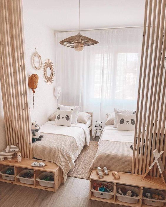 Crie a sensação de privacidade com uma tela ou cortina que separe as camas, caso os interesses sejam muito distintos.